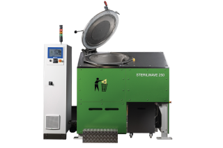 Les solutions de traitement sur site des DASRI traditionnelles comme les solutions autoclaves sont rarement adaptés aux besoins des plus petites structures médicales, nécessitant une zone de travail importante, et consommant de l’eau et de l’électricité en grande quantité tout en rejetant des effluents liquides pollués. La gestion des DASRI est alors effectuée hors du site de production et sous-traitée à des prestataires de services spécialisés, nécessitant un stockage des déchets biomédicaux puis leur collecte par un organisme agréé. Cette solution, quand elle est appliquée, s’avère coûteuse pour les plus petites structures de santé. Les modèles Sterilwave 50 et 100, de dimensions très réduites (environ 1 m3 soit la taille d’une machine à laver) mais avec une capacité de 20 kg/h, ont été développés pour la gestion de petites quantités de déchets hospitaliers. Leur technologie combinant broyage et décontamination par micro-ondes ne nécessite pas d’accès à un point d’eau durant le procédé et leur taille leur permet de s’intégrer facilement au sein de petites structures, avec une mobilisation réduite de l’opérateur, seulement 10 minutes par cycle.
